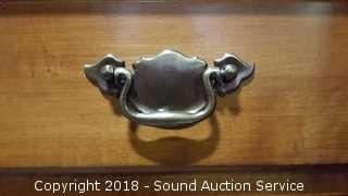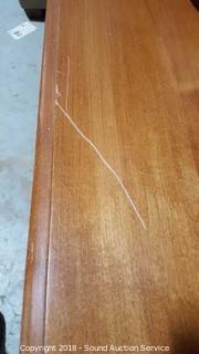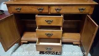 By Young Republic Group. Has (5) drawers, (2) lower cabinets, plate racks. Some scratching on the tabletop, in overall good condition. Approx. 71" H, 52" W, 19" D.