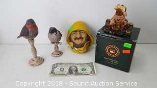 Boyd's Bear is the Bailey Honey Bear 1993, comes with original box. Birds are 5" and 7" tall. Gatco bust is 6".