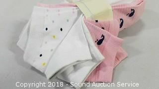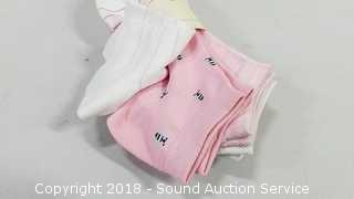 Includes: (6) pairs of ankle socks, and (2) pairs of slipper socks. Size 4-10.