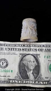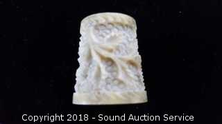 Includes: porcelain Lindner German thimble, and a carved stone thimble.