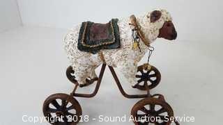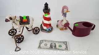 Lot #0022: Vtg. Sheep Carriage, Goose, Lighthouse & Water Can