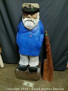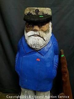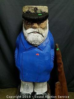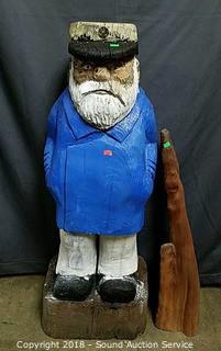 Lot #0137: Yard Art Sea Captain Chainsaw Carving & Driftwood