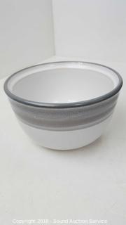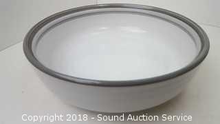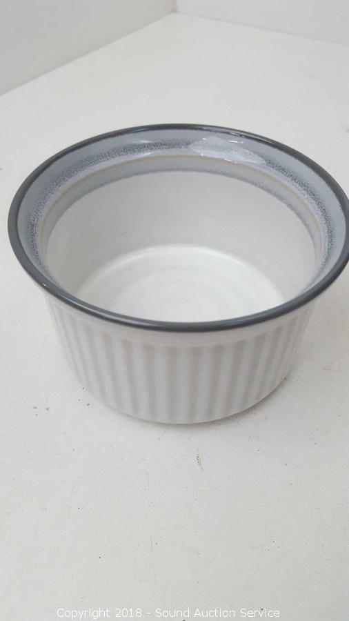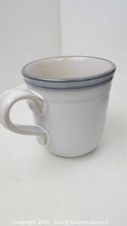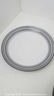 Mostly service for 10. Includes: (10) dinner plates, (10) lunch plates, (10) bowls, (8) cups, (8) ramekins, charger, platter, two serving bowls, cream and sugar, and SP.