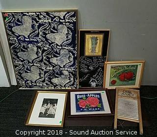 Lot #0302: Advertising Art, Washboard, Tapestry, Chalkboard