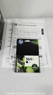 564XL black ink cartridge, installation disc, and instruction manual.