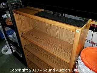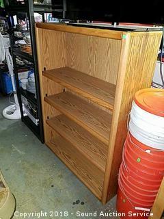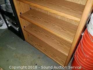Has 5 shelves, including the top, 3 adjustable shelves. Approx. 48" H, 36" W, 12" D.