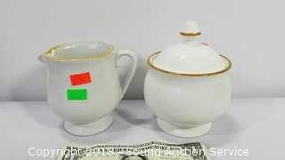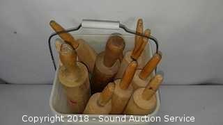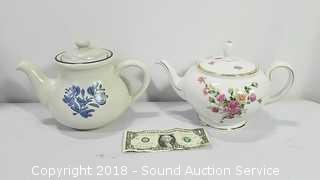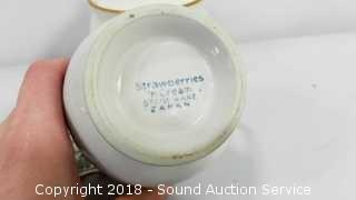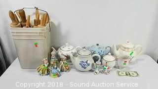 Also comes with creamer, sugar and bucket of rolling pins. Includes: Sadler Teapot, Pfaltzgraff teapot, Strawberries & Cream stoneware creamer and sugar, and more.