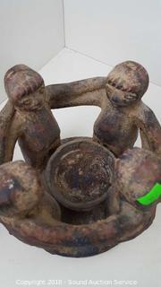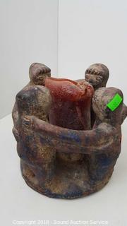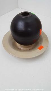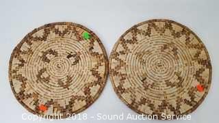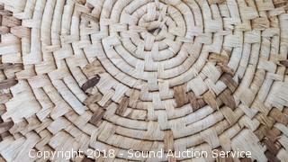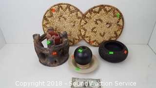 Lot #0030: Pottery Candle Ring, Woven Mats, Wood Bowl & More