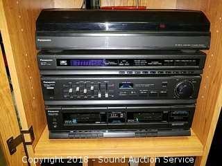 Lot #0245: Stereo Cabinet w/Panasonic Home Theater System