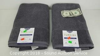 Lot #0095: 2 Fine Turkish Bath Towels 100% Cotton - Iris