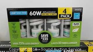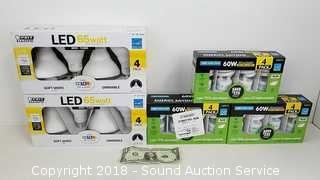 Includes: (2) 4 Pack LED Flood Light Bulbs 11.5w & (3) 4 Pack Fluorescent Light Bulbs.