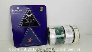 Swarovski 2017 Ornament Annual edition crystal ornament - sealed package, & 4 Wire edge roll of ribbon - 50 yard rolls.