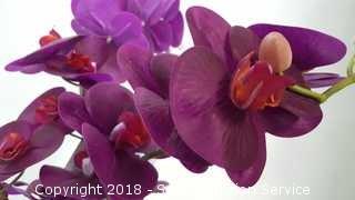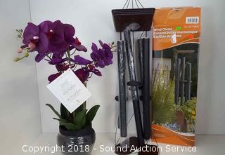 Life-like orchid arrangement, natural look and feel. Wind chime with harmonic aluminum tubes and hook. Weather resistant finish, plastic strikers.