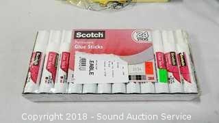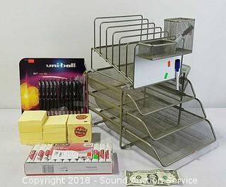 12 Uniball Vibrant Gel Pens, 24 Glue Sticks, 24 stacks of post it notes, Desk Organizers with white board