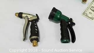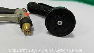 Lot #0290: Coil Garden Hose & (2) Hose Nozzles