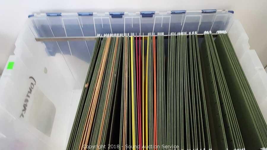 Lot #0079: File Storage Tote w/Hanging Files & 3-Ring Binders