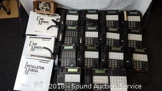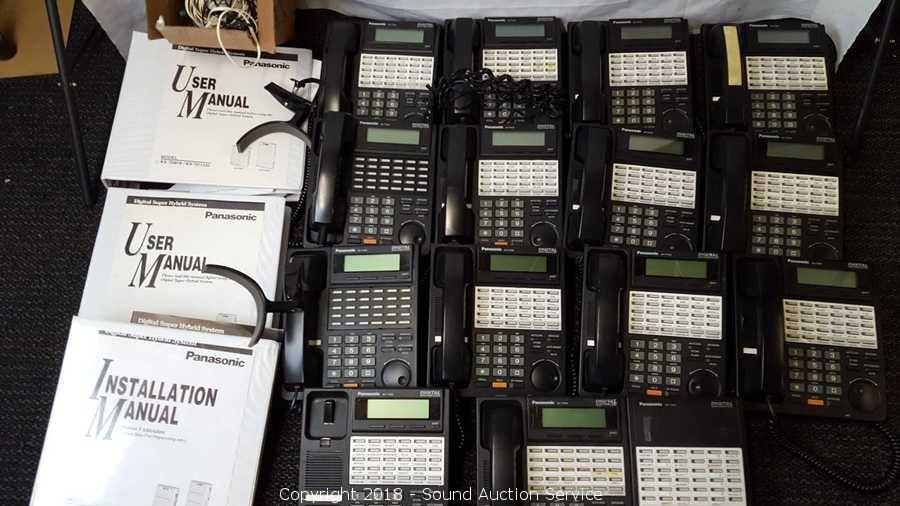 Includes: (14) phone bases, and (13) handsets. Models KX-T7441 and KX-T7433. Comes with (3) binders of user manuals (Installation manual and (2) user manuals) and phone line.