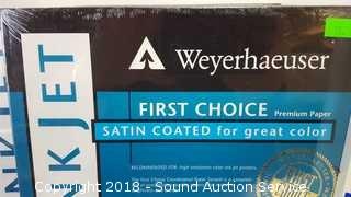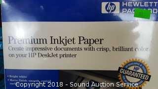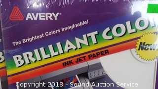 Includes: HP Premium Inkjet Paper 200 Sheets, (3) packages Avery Brilliant Color Inkjet Printer (50 sheets per package), Weyerhaeuser First Choice Satin Coat Inkjet Paper 26lbs. All are in sealed packages, 8.5" x 11".