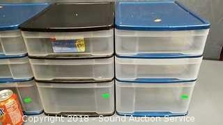 Lot #0269: (4) 3-Drawer Plastic Storage Totes