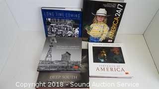 Includes: Deep South, America 24/7, Portraits of America, Distinctly American, and Long Time Coming. Condition of items sold - The auctioneer shall not be responsible for the correct description, authenticity, genuineness of, estimated selling price of, or defect in any lot, and makes no warranty in connection therewith. No allowance will be made or sale set aside on account of any incorrectness, error in cataloging, or any imperfection not noted. No deduction will be allowed on damaged articles as all goods being exposed for public exhibition are sold “as is” and without recourse. All measurements and sizes - are approximate. Claims - No claims will be allowed after goods are removed from premises. All lots - to be sold AS IS, WHERE IS. ALL SALES FINAL, WE DO NOT ACCEPT RETURNS.