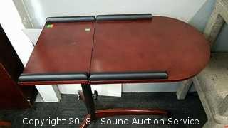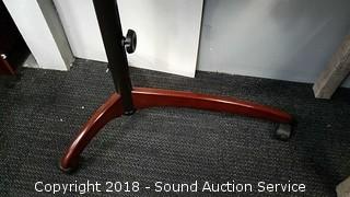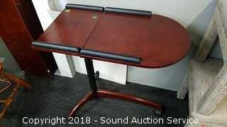 Approx. 25" to 34" H, 29" x 16". Top tilts. Condition of items sold - The auctioneer shall not be responsible for the correct description, authenticity, genuineness of, estimated selling price of, or defect in any lot, and makes no warranty in connection therewith. No allowance will be made or sale set aside on account of any incorrectness, error in cataloging, or any imperfection not noted. No deduction will be allowed on damaged articles as all goods being exposed for public exhibition are sold “as is” and without recourse. All measurements and sizes - are approximate. Claims - No claims will be allowed after goods are removed from premises. All lots - to be sold AS IS, WHERE IS. ALL SALES FINAL, WE DO NOT ACCEPT RETURNS.