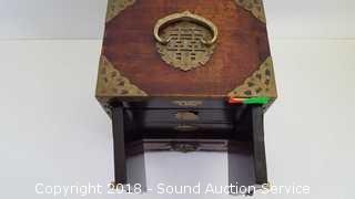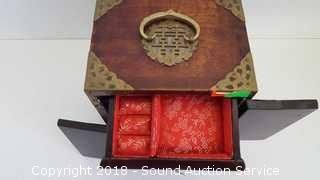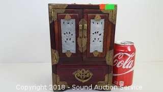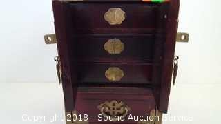 The hinges on one of the doors need some work, missing a pin. Solid brass hardware. All of the brass is beautifully etched. Approx. 8-1/2" x 6" x 4-1/2". Condition of items sold - The auctioneer shall not be responsible for the correct description, authenticity, genuineness of, estimated selling price of, or defect in any lot, and makes no warranty in connection therewith. No allowance will be made or sale set aside on account of any incorrectness, error in cataloging, or any imperfection not noted. No deduction will be allowed on damaged articles as all goods being exposed for public exhibition are sold “as is” and without recourse. All measurements and sizes - are approximate. Claims - No claims will be allowed after goods are removed from premises. All lots - to be sold AS IS, WHERE IS. ALL SALES FINAL, WE DO NOT ACCEPT RETURNS.