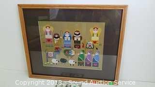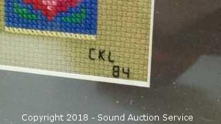 Framed and matted with glass. Stitched "CKL 1984". Approx. 21' x 17". Condition of items sold - The auctioneer shall not be responsible for the correct description, authenticity, genuineness of, estimated selling price of, or defect in any lot, and makes no warranty in connection therewith. No allowance will be made or sale set aside on account of any incorrectness, error in cataloging, or any imperfection not noted. No deduction will be allowed on damaged articles as all goods being exposed for public exhibition are sold “as is” and without recourse. All measurements and sizes - are approximate. Claims - No claims will be allowed after goods are removed from premises. All lots - to be sold AS IS, WHERE IS. ALL SALES FINAL, WE DO NOT ACCEPT RETURNS.
