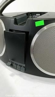 Works great! Comes with remote, has a hidden compartment in the back to store the remote. Has audio in, USB, and video. Approx. 10" H, 18" L. Condition of items sold - The auctioneer shall not be responsible for the correct description, authenticity, genuineness of, estimated selling price of, or defect in any lot, and makes no warranty in connection therewith. No allowance will be made or sale set aside on account of any incorrectness, error in cataloging, or any imperfection not noted. No deduction will be allowed on damaged articles as all goods being exposed for public exhibition are sold “as is” and without recourse. All measurements and sizes - are approximate. Claims - No claims will be allowed after goods are removed from premises. All lots - to be sold AS IS, WHERE IS. ALL SALES FINAL, WE DO NOT ACCEPT RETURNS.