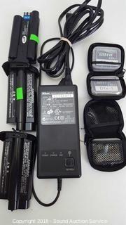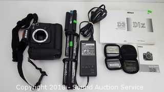 Comes with (4) batteries, charger, user manual, and (5) 1GB compact flash drives. Tested, works. Approx. $800 retail value. Condition of items sold - The auctioneer shall not be responsible for the correct description, authenticity, genuineness of, estimated selling price of, or defect in any lot, and makes no warranty in connection therewith. No allowance will be made or sale set aside on account of any incorrectness, error in cataloging, or any imperfection not noted. No deduction will be allowed on damaged articles as all goods being exposed for public exhibition are sold “as is” and without recourse. All measurements and sizes - are approximate. Claims - No claims will be allowed after goods are removed from premises. All lots - to be sold AS IS, WHERE IS. ALL SALES FINAL, WE DO NOT ACCEPT RETURNS.