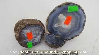 Approx. 2-3/4" and 4" diameters. Condition of items sold - The auctioneer shall not be responsible for the correct description, authenticity, genuineness of, estimated selling price of, or defect in any lot, and makes no warranty in connection therewith. No allowance will be made or sale set aside on account of any incorrectness, error in cataloging, or any imperfection not noted. No deduction will be allowed on damaged articles as all goods being exposed for public exhibition are sold “as is” and without recourse. All measurements and sizes - are approximate. Claims - No claims will be allowed after goods are removed from premises. All lots - to be sold AS IS, WHERE IS. ALL SALES FINAL, WE DO NOT ACCEPT RETURNS.