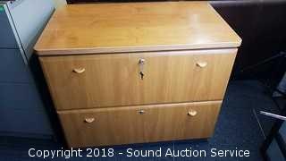 Lot #0285: Wood Grain 2-Drawer Horizontal Filing Cabinet