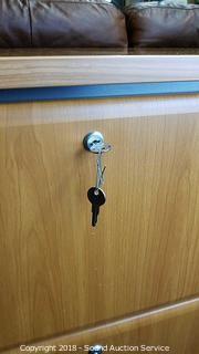 With lock and key. Comes with hanging file folders. Standard size. Approx. 29-1/2" H, 36" W, 21" D. Condition of items sold - The auctioneer shall not be responsible for the correct description, authenticity, genuineness of, estimated selling price of, or defect in any lot, and makes no warranty in connection therewith. No allowance will be made or sale set aside on account of any incorrectness, error in cataloging, or any imperfection not noted. No deduction will be allowed on damaged articles as all goods being exposed for public exhibition are sold “as is” and without recourse. All measurements and sizes - are approximate. Claims - No claims will be allowed after goods are removed from premises. All lots - to be sold AS IS, WHERE IS. ALL SALES FINAL, WE DO NOT ACCEPT RETURNS.