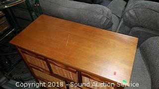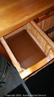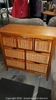 Lot #0213: Adorable Solid Wood 7-Wicker-Drawer Dresser