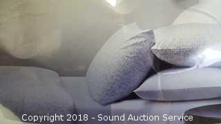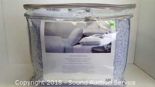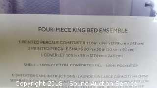 Comes in original bag. 100% cotton. Includes: comforter, (2) shams and coverlet. Printed blue pattern. Condition of items sold - The auctioneer shall not be responsible for the correct description, authenticity, genuineness of, estimated selling price of, or defect in any lot, and makes no warranty in connection therewith. No allowance will be made or sale set aside on account of any incorrectness, error in cataloging, or any imperfection not noted. No deduction will be allowed on damaged articles as all goods being exposed for public exhibition are sold “as is” and without recourse. All measurements and sizes - are approximate. Claims - No claims will be allowed after goods are removed from premises. All lots - to be sold AS IS, WHERE IS. ALL SALES FINAL, WE DO NOT ACCEPT RETURNS.