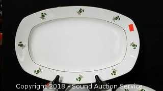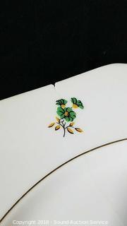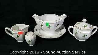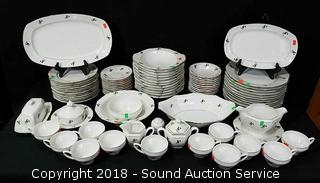 Count is not including lids. Includes: (12) dinner plates (one has a crack and chip), (12) lunch plates, (12) soup bowls, (2) serving bowls, (2) serving platters, creamer, sugar, pepper shaker, (11) condiment bowls, (11) saucers, (12) cups, gravy boat, butter dish, and cheese dish. Condition of items sold - The auctioneer shall not be responsible for the correct description, authenticity, genuineness of, estimated selling price of, or defect in any lot, and makes no warranty in connection therewith. No allowance will be made or sale set aside on account of any incorrectness, error in cataloging, or any imperfection not noted. No deduction will be allowed on damaged articles as all goods being exposed for public exhibition are sold “as is” and without recourse. All measurements and sizes - are approximate. Claims - No claims will be allowed after goods are removed from premises. All lots - to be sold AS IS, WHERE IS. ALL SALES FINAL, WE DO NOT ACCEPT RETURNS.