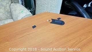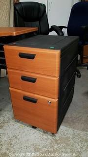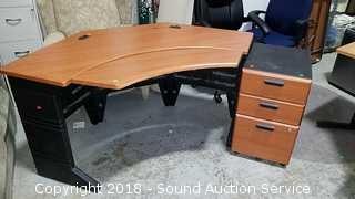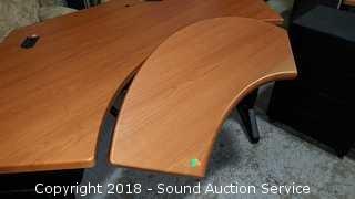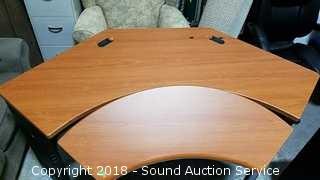 Desk has a Tilting Keyboard & Mouse Tray. Comes with matching filing cabinet, has one standard file drawer, locking. Some of the veneer is starting to chip on the tray. Heavy duty plastic base. Approx. 68" L, 36" D (including tray), 30" H. Condition of items sold - The auctioneer shall not be responsible for the correct description, authenticity, genuineness of, estimated selling price of, or defect in any lot, and makes no warranty in connection therewith. No allowance will be made or sale set aside on account of any incorrectness, error in cataloging, or any imperfection not noted. No deduction will be allowed on damaged articles as all goods being exposed for public exhibition are sold “as is” and without recourse. All measurements and sizes - are approximate. Claims - No claims will be allowed after goods are removed from premises. All lots - to be sold AS IS, WHERE IS. ALL SALES FINAL, WE DO NOT ACCEPT RETURNS.