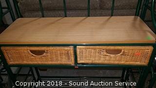 Approx. 70" H, 6ft W, 18" D. Has side shelves (shelves are plastic), two drawers and a lower shelf. Condition of items sold - The auctioneer shall not be responsible for the correct description, authenticity, genuineness of, estimated selling price of, or defect in any lot, and makes no warranty in connection therewith. No allowance will be made or sale set aside on account of any incorrectness, error in cataloging, or any imperfection not noted. No deduction will be allowed on damaged articles as all goods being exposed for public exhibition are sold “as is” and without recourse. All measurements and sizes - are approximate. Claims - No claims will be allowed after goods are removed from premises. All lots - to be sold AS IS, WHERE IS. ALL SALES FINAL, WE DO NOT ACCEPT RETURNS.