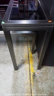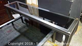 Lot #0100: Modern Brushed Steel Glass Top Sofa Table