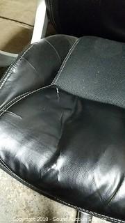 Some cracks in the seat. Synthetic leather. Condition of items sold - The auctioneer shall not be responsible for the correct description, authenticity, genuineness of, estimated selling price of, or defect in any lot, and makes no warranty in connection therewith. No allowance will be made or sale set aside on account of any incorrectness, error in cataloging, or any imperfection not noted. No deduction will be allowed on damaged articles as all goods being exposed for public exhibition are sold “as is” and without recourse. All measurements and sizes - are approximate. Claims - No claims will be allowed after goods are removed from premises. All lots - to be sold AS IS, WHERE IS. ALL SALES FINAL, WE DO NOT ACCEPT RETURNS.