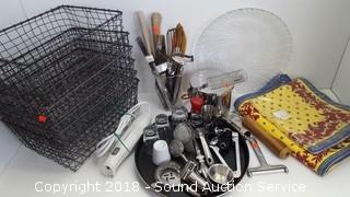 Lot #0024: Wire Baskets, Serving Trays, Carving Knife & More