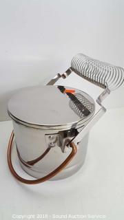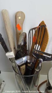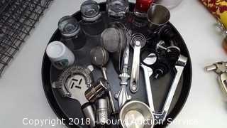 Includes: Unknown pot, bar items, electric knife, and more. Condition of items sold - The auctioneer shall not be responsible for the correct description, authenticity, genuineness of, estimated selling price of, or defect in any lot, and makes no warranty in connection therewith. No allowance will be made or sale set aside on account of any incorrectness, error in cataloging, or any imperfection not noted. No deduction will be allowed on damaged articles as all goods being exposed for public exhibition are sold “as is” and without recourse. All measurements and sizes - are approximate. Claims - No claims will be allowed after goods are removed from premises. All lots - to be sold AS IS, WHERE IS. ALL SALES FINAL, WE DO NOT ACCEPT RETURNS.