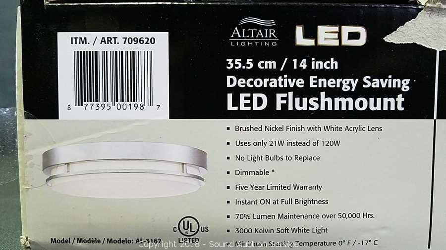 Lot #0343: 14" Brushed Nickel LED Flushmount Ceiling Light