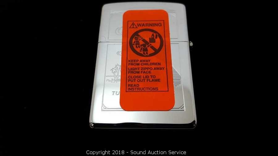 Still with original seal on the Zippo. Comes with original tin and paperwork. Condition of items sold - The auctioneer shall not be responsible for the correct description, authenticity, genuineness of, estimated selling price of, or defect in any lot, and makes no warranty in connection therewith. No allowance will be made or sale set aside on account of any incorrectness, error in cataloging, or any imperfection not noted. No deduction will be allowed on damaged articles as all goods being exposed for public exhibition are sold “as is” and without recourse. All measurements and sizes - are approximate. Claims - No claims will be allowed after goods are removed from premises. All lots - to be sold AS IS, WHERE IS. ALL SALES FINAL, WE DO NOT ACCEPT RETURNS.