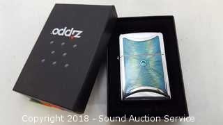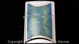 Chrome Finish, Gemstone setting. Still has original seal on the Zippo. Comes with original case and paperwork. Condition of items sold - The auctioneer shall not be responsible for the correct description, authenticity, genuineness of, estimated selling price of, or defect in any lot, and makes no warranty in connection therewith. No allowance will be made or sale set aside on account of any incorrectness, error in cataloging, or any imperfection not noted. No deduction will be allowed on damaged articles as all goods being exposed for public exhibition are sold “as is” and without recourse. All measurements and sizes - are approximate. Claims - No claims will be allowed after goods are removed from premises. All lots - to be sold AS IS, WHERE IS. ALL SALES FINAL, WE DO NOT ACCEPT RETURNS.