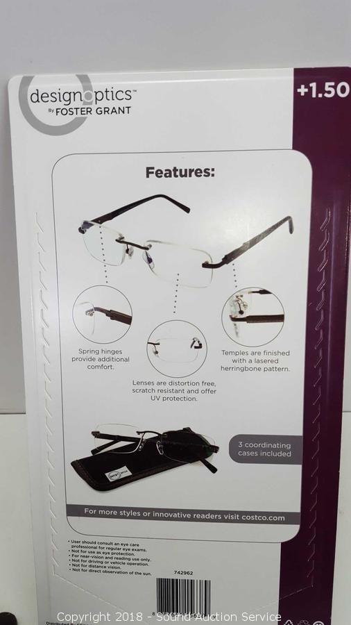 Package is still factory sealed, lens has come off of one of the pair of glasses. Each pair comes with a coordinating case. Condition of items sold - The auctioneer shall not be responsible for the correct description, authenticity, genuineness of, estimated selling price of, or defect in any lot, and makes no warranty in connection therewith. No allowance will be made or sale set aside on account of any incorrectness, error in cataloging, or any imperfection not noted. No deduction will be allowed on damaged articles as all goods being exposed for public exhibition are sold “as is” and without recourse. All measurements and sizes - are approximate. Claims - No claims will be allowed after goods are removed from premises. All lots - to be sold AS IS, WHERE IS. ALL SALES FINAL, WE DO NOT ACCEPT RETURNS.