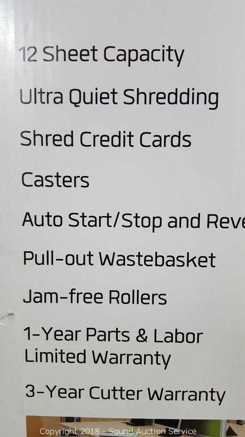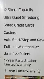 12 sheet capacity. Comes in original box. Tested, works. Condition of items sold - The auctioneer shall not be responsible for the correct description, authenticity, genuineness of, estimated selling price of, or defect in any lot, and makes no warranty in connection therewith. No allowance will be made or sale set aside on account of any incorrectness, error in cataloging, or any imperfection not noted. No deduction will be allowed on damaged articles as all goods being exposed for public exhibition are sold “as is” and without recourse. All measurements and sizes - are approximate. Claims - No claims will be allowed after goods are removed from premises. All lots - to be sold AS IS, WHERE IS. ALL SALES FINAL, WE DO NOT ACCEPT RETURNS.