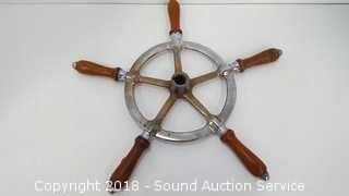 Lot #0035: 18" Brass & Wood Handled Ship Wheel
