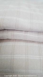 Beige plaid pattern. Condition of items sold - The auctioneer shall not be responsible for the correct description, authenticity, genuineness of, estimated selling price of, or defect in any lot, and makes no warranty in connection therewith. No allowance will be made or sale set aside on account of any incorrectness, error in cataloging, or any imperfection not noted. No deduction will be allowed on damaged articles as all goods being exposed for public exhibition are sold “as is” and without recourse. All measurements and sizes - are approximate. Claims - No claims will be allowed after goods are removed from premises. All lots - to be sold AS IS, WHERE IS. ALL SALES FINAL, WE DO NOT ACCEPT RETURNS.