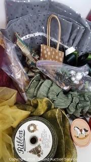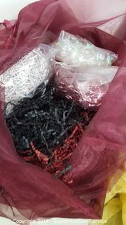 Includes: Shred, ribbon, rafia and more. Condition of items sold - The auctioneer shall not be responsible for the correct description, authenticity, genuineness of, estimated selling price of, or defect in any lot, and makes no warranty in connection therewith. No allowance will be made or sale set aside on account of any incorrectness, error in cataloging, or any imperfection not noted. No deduction will be allowed on damaged articles as all goods being exposed for public exhibition are sold “as is” and without recourse. All measurements and sizes - are approximate. Claims - No claims will be allowed after goods are removed from premises. All lots - to be sold AS IS, WHERE IS. ALL SALES FINAL, WE DO NOT ACCEPT RETURNS.