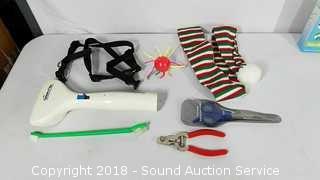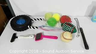 Includes; Rapid Bath Pet Cleaning System, Chew Toys, Balls, No Scratch, Brushes, Feeding Bowl, Frisbee & More. Condition of items sold - The auctioneer shall not be responsible for the correct description, authenticity, genuineness of, estimated selling price of, or defect in any lot, and makes no warranty in connection therewith. No allowance will be made or sale set aside on account of any incorrectness, error in cataloging, or any imperfection not noted. No deduction will be allowed on damaged articles as all goods being exposed for public exhibition are sold “as is” and without recourse. All measurements and sizes - are approximate. Claims - No claims will be allowed after goods are removed from premises. All lots - to be sold AS IS, WHERE IS. ALL SALES FINAL, WE DO NOT ACCEPT RETURNS.